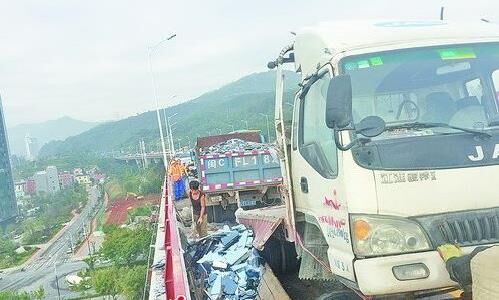 “你知道嗎,差一點點就沖下橋了。”想起車輛被追尾失控那一刻,小貨車司機徐先生直搖頭。今天凌晨4點多,在海滄大橋進島方向91號燈桿處,一輛運載玻璃的小貨車被水泥攪拌車追尾,整個車頭騎上海滄大橋鐵護欄。值得慶幸的是,這起事故沒有造成人員傷亡。