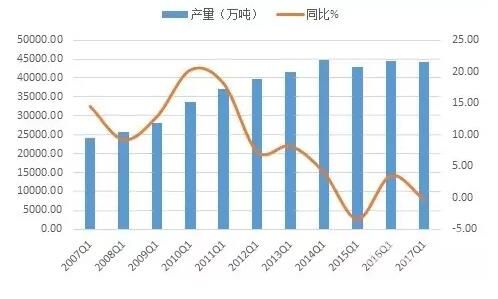 本文以2007~2016年的十年數(shù)據(jù)為觀察基礎(chǔ),從2017年一季度水泥的產(chǎn)量表現(xiàn)對全年的市場趨勢作出分析判斷,供業(yè)內(nèi)參考。