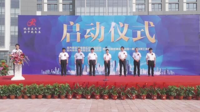 臺上領(lǐng)導(dǎo)共同為慶典儀式剪彩,將現(xiàn)場氣氛推向高潮。