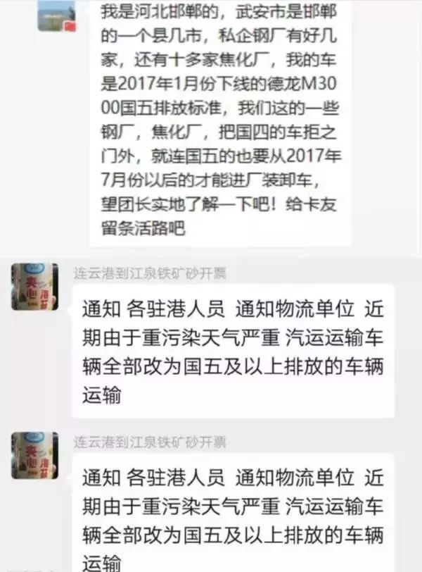 河南漯河、周口、洛陽等不少城市目前《重污染天氣應(yīng)急預(yù)案》錯峰生產(chǎn)、限制生產(chǎn)甚至?xí)和Ia(chǎn),同時禁止工業(yè)企業(yè)、物流(除民生保障類)使用國四及國四以下的重型載貨汽車(含燃氣)進行運輸。 漯河市交通局收到督辦令,對全市1.3萬輛重型載貨汽車進行清查,對在漯車輛實施封存;同時對運輸企業(yè)停放的外地籍國四及以下重型載貨汽車(含燃氣)實施封存,所有車輛于12月9日24時全部封存完畢。 濟南《2019-2020年度重點行業(yè)秋冬季差異化錯峰生產(chǎn)工作方案》:橙色及以上預(yù)警期間禁止使用國四及以下重型載貨車輛(含燃氣)進行物料運輸,可不再對生產(chǎn)線采取減排措施。 朔州市《2019-2020年秋冬季工業(yè)企業(yè)錯峰生產(chǎn)實施方案》:鋼鐵、建材、電力、化工、煤炭等涉及大宗原材料及產(chǎn)品運輸?shù)闹攸c用車企業(yè)一律實施錯峰運輸。重點用車企業(yè)要合理安排運力,封存自有車隊中排放較高的車輛,優(yōu)先選擇排放控制水平較好的國五以上標(biāo)準(zhǔn)車輛承擔(dān)運輸任務(wù)。有條件使用鐵路運輸?shù)模瓌t上全部采用鐵路運輸。 寧夏《關(guān)于2019-2020年冬春季部分重點工業(yè)行業(yè)開展錯峰生產(chǎn)的通知》:要督促鋼鐵、建材、焦化、有色、化工、礦山等涉及大宗物料運輸?shù)闹攸c企業(yè)和城市物流配送企業(yè)制定錯峰運輸方案,原則上不允許柴油貨車在重污染天氣預(yù)警響應(yīng)期間進出廠區(qū)(保證安全生產(chǎn)運行、運輸民生保障物資或特殊需求產(chǎn)品的國五及以上排放標(biāo)準(zhǔn)的車輛除外)。 山西省《落實2019-2020年秋冬季大氣污染綜合治理工業(yè)企業(yè)錯峰生產(chǎn)》:完成治理任務(wù)且列入工業(yè)和信息化部綠色工廠示范的企業(yè)、污染物排放達到超低排放標(biāo)準(zhǔn)(沒有超低排放標(biāo)準(zhǔn)的行業(yè),污染物排放低于行業(yè)特別排放限值20%以上)且物料運輸采用鐵路運輸或其他清潔運輸方式的企業(yè)(其中,焦化企業(yè)必須采取干法熄焦)、滿足生態(tài)環(huán)境部《關(guān)于加強重污染天氣應(yīng)對夯實應(yīng)急減排措施的指導(dǎo)意見》要求的A級企業(yè),可列入豁免清單,不參與錯峰。 新疆《關(guān)于自治區(qū)重點行業(yè)采暖期實施錯峰生產(chǎn)的通知》:鋼鐵行業(yè)將大宗物料和產(chǎn)品主要通過鐵路、管道、新能源汽車運輸?shù)牧腥肱欧艠?biāo)準(zhǔn)。 棗莊市《2019-2020年秋冬季重點行業(yè)差異化錯峰生產(chǎn)實施方案》:達到《山東省建材工業(yè)大氣污染物排放標(biāo)準(zhǔn)》(DB37/2373-2018)表2規(guī)定重點控制區(qū)特別排放限值,全部完成無組織排放治理,新能源汽車或國五及以上標(biāo)準(zhǔn)的汽車運輸比例達到80%及以上,在2019年12月1日至2020年1月31日停產(chǎn)。 河南省《河南省區(qū)域環(huán)境空氣質(zhì)量預(yù)報》第(2019)300期文件稱11月1日起,全省大部分地區(qū)有PM2.5中度或重度污染過程。河南省環(huán)境監(jiān)測中心建議安陽、鶴壁、新鄉(xiāng)、焦作、濮陽、鄭州、開封、洛陽、濟源、許昌、平頂山、商丘、周口等地加強本地區(qū)分析研判 ,及時啟動相應(yīng)級別預(yù)警。據(jù)貨運行業(yè)反饋,河南省上述城市均開啟了重污染天氣應(yīng)急響應(yīng),禁止國四及國四以下車輛進廠裝卸貨。 南京市《南京市明確下半年大氣污染防治攻堅措施》:在繞城高速公路合圍區(qū)域內(nèi),對高排放車輛實施限行。嚴(yán)格控制每日外地入城柴油貨車通行證數(shù)量,國四及以上排放標(biāo)準(zhǔn)的,方可辦理入城通行證。 淄博市《博山區(qū)2019年夏秋季工業(yè)企業(yè)錯峰生產(chǎn)實施方案》:企業(yè)物料產(chǎn)品主要使用鐵路、水路、管道等綠色運輸;使用公路運輸?shù)男履茉雌嚮驀募耙陨蠘?biāo)準(zhǔn)的汽車運輸比例達到80%及以上,在車輛出入口安裝視頻監(jiān)控系統(tǒng),并建立車輛運輸臺賬。