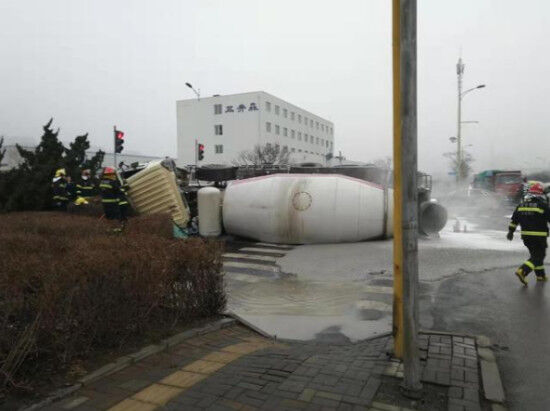 11月11日中午12時左右,在S102省道二灣附近,一輛大型混凝土攪拌罐車側(cè)翻,幸無人員傷亡。