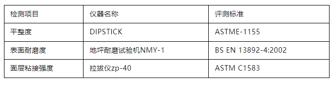 參評項(xiàng)目包括混凝土面層地坪、水泥砂漿面層地坪、整體樹脂地坪系統(tǒng)三大類(下分13種細(xì)分地坪)?!癢OCA 地坪獎-亞洲賽區(qū)”(WOCA AWARDS)執(zhí)行國際先進(jìn)的檢測檢驗(yàn)標(biāo)準(zhǔn),對候選項(xiàng)目進(jìn)行現(xiàn)場性能檢測,依據(jù)三個(gè)維度——平整度(FF/FL Testing)、表面耐磨度(BCA Abrasion Testing)、面層粘接強(qiáng)度(Pull-off Adhesion Testing)的測評數(shù)值加權(quán)系數(shù)后得出最終分?jǐn)?shù)進(jìn)行評選。
