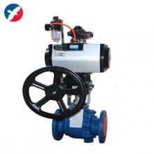 2.Q641F46氣動(dòng)襯氟球閥是全電子式氣動(dòng)執(zhí)行機(jī)構(gòu),采有機(jī)電一體化結(jié)構(gòu)。Q641F46氣動(dòng)襯氟球閥具有機(jī)內(nèi)伺服操作和開度信號(hào)位置反饋、位置指示、手動(dòng)操作等功能,功能強(qiáng)、性能可靠、連線簡單。Q641F46氣動(dòng)襯氟球閥通過輸入電流信號(hào)或電壓信號(hào),改變球芯的旋轉(zhuǎn)角度(0-90o任意角度),實(shí)現(xiàn)比例調(diào)節(jié)動(dòng)作。