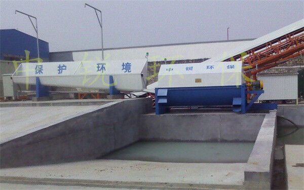 該系統(tǒng)主要由:攪拌車加水清洗裝置,溜槽輸送裝置,砂石漿水分離裝置,和泥漿水后處理裝置組成?;炷凛斔驮O(shè)備清洗后,將殘余混凝土排入溜槽中,在高壓水流沖擊下,經(jīng)溜槽進(jìn)入砂石分離機(jī),在不斷旋轉(zhuǎn)的分離機(jī)作用下,對(duì)混凝土進(jìn)行充分的清洗,同時(shí)將砂、石進(jìn)行分離,分離后的砂、石在導(dǎo)料葉片的作用下背向流動(dòng),再通過(guò)提升式出料口排出分離機(jī),分別堆放。清洗后的漿水從分離機(jī)的底部排出進(jìn)入沉淀池逐級(jí)沉淀后循環(huán)使用或進(jìn)入攪拌池回收利用。進(jìn)入攪拌池(一般情況2個(gè)攪拌池)的漿水為了防止沉淀凝固,需通過(guò)攪拌器的作用,攪拌器的工作為間歇式。分離出水泥漿在連續(xù)的攪拌器作用下,再通過(guò)高壓污水泵輸送到攪拌樓中待生產(chǎn)計(jì)量再利用。整個(gè)控制系統(tǒng)設(shè)有手動(dòng)和自動(dòng)控制,方便控制設(shè)置,整個(gè)系統(tǒng)運(yùn)行可靠,故障率低,維護(hù)量少等特點(diǎn)。