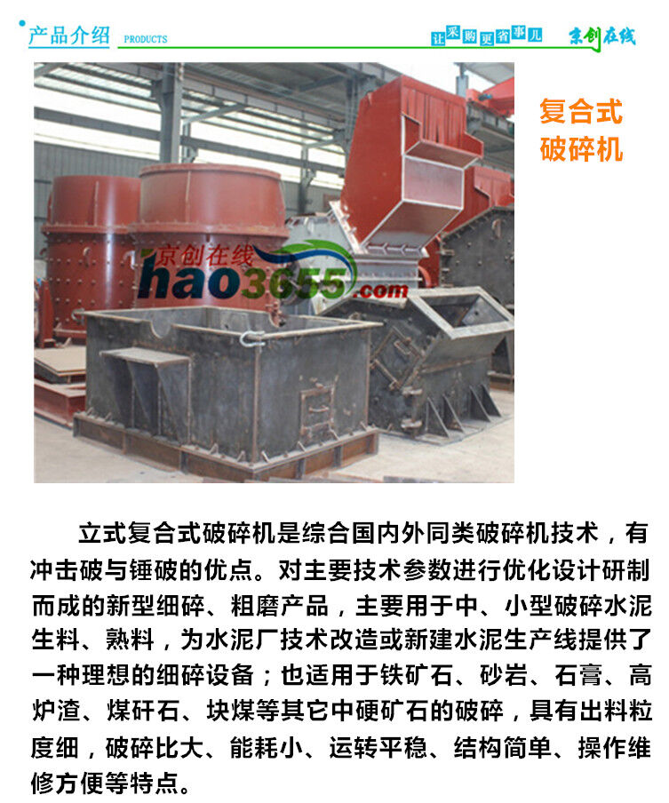 復合式破碎機800簡稱為復合破,是破碎生產(chǎn)線和制砂生產(chǎn)線中常用設備之一。復合破碎機是一種無篩條、可調(diào)式細碎設備,可廣泛適用于水泥廠的生料、熟料細碎作業(yè),同時也可用于白云石、焦寶石、鉛鋅礦、蛇紋石、高爐渣、煤矸石、磷礦石等中等硬度物料的細碎作業(yè),特別適用于硬質(zhì)石灰?guī)r、白云巖、花崗巖、玄武巖等人工造砂或高速公路路面石料的加工破碎。