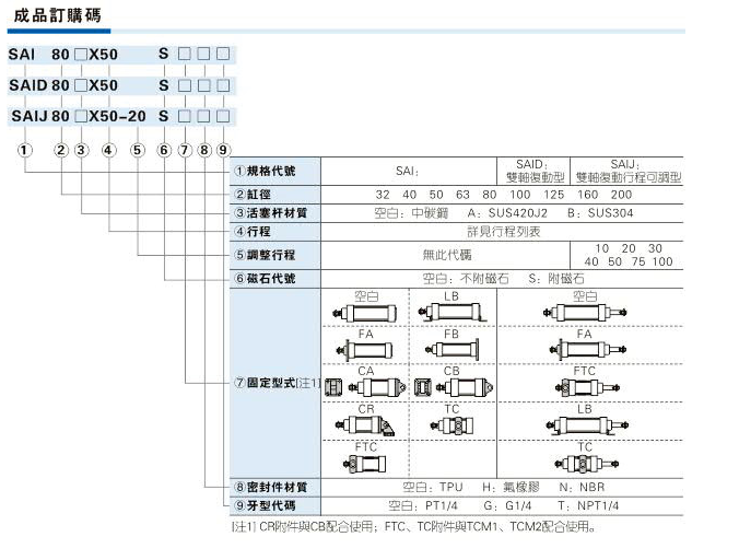 亞德客標準氣缸SAI系列