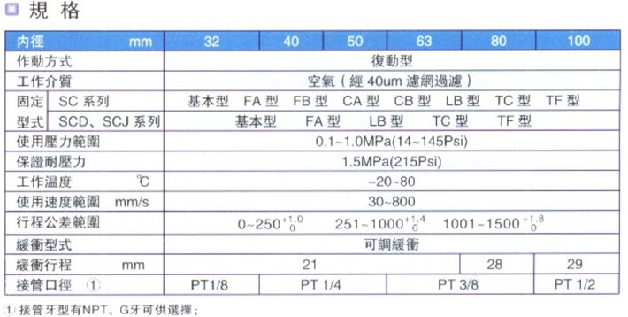 6、氣缸安裝附件與SC系列氣缸共用;