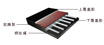 鋼絲繩提升帶內部結構可分為:普通結構型、橫向增強型、預埋線圈防撕裂型