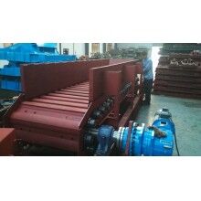 a 以0.02—0.12m/s速度運(yùn)轉(zhuǎn)為宜。切忌儲(chǔ)倉(cāng)內(nèi)物料空倉(cāng)。當(dāng)來(lái)料少時(shí),允許間歇操作。給料須均勻,避免大塊料沖砸槽體,而避免槽體的變形和板喂機(jī)的歪斜。