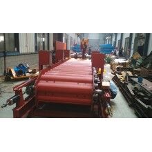 該裝置的安裝要點(diǎn)在于對鋼絲繩仲人下料口深度和彈簧拉力的調(diào)整,要以不斷料不溢料為準(zhǔn)。鋼圓盤離給料機(jī)過近,稍微有點(diǎn)料層厚度板喂機(jī)就會停止,影響正常下料;如果過高又起不到防溢料的作用。彈簧拉力過大過小也是如此。因此,調(diào)節(jié)時(shí)要反復(fù)耐心地進(jìn)行,相互配合,才能達(dá)到預(yù)期效果。