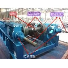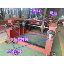 主要由從動(dòng)軸、兩個(gè)從動(dòng)鏈輪、軸承、軸承座,拉緊彈簧及拉緊螺桿等組成。鏈輪是通過漲緊套固定在軸上,軸的兩端裝有雙列調(diào)心滾子軸承和軸承座。軸承座裝在機(jī)架兩側(cè),并在滑軌之間前后滑動(dòng)。