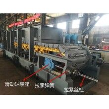 拉緊裝置是一種螺旋絲桿拉緊結(jié)構(gòu),功用是將板拉緊,使之具備預(yù)定好的的預(yù)緊張力。它是由拉緊軸、鏈輪、定位套、可以滑動(dòng)的軸承座、絲桿、緊固螺母等部件組成。軸承座裝在機(jī)架兩側(cè),并在滑板之間前后滑動(dòng)。拉緊裝置用來拉緊和調(diào)解鏈條的水位置,保證松緊適度,使其安穩(wěn)運(yùn)載,經(jīng)由拉緊螺桿拉緊,使兩側(cè)的拉力趨于勻稱,當(dāng)鏈板突然經(jīng)受物料的沖撞時(shí),復(fù)合拉緊彈簧可以起緩沖功用,保護(hù)板和其余各部件免受損壞。