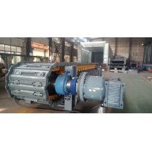 該裝置為直交軸支點(diǎn)浮動(dòng)式,主軸套裝在行星減慢速器的輸出軸內(nèi),通過(guò)瑣緊盤(pán)將兩者聯(lián)接起來(lái),其特點(diǎn)是懸掛無(wú)基礎(chǔ),重量輕,速比大,由于采用支點(diǎn)浮動(dòng)式,減少了安裝誤差及支座引起的附加彎矩,提高了傳軸的使用壽命,拆裝及維修方便。